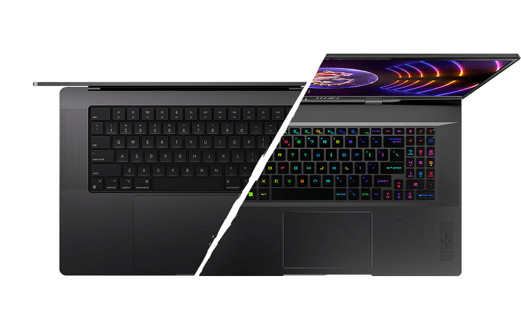 On one side of the ring, we have the 13th Gen Intel® Core™ i9-13900H mobile processor-based MSI Stealth 17 laptop. On the other side of the ring, we have an Apple M3 Max MacBook Pro.
