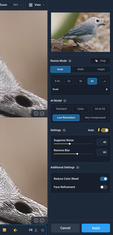 Topaz Photo AI 4X Upscale workload: This workload uses the 'Upscale and Resize' feature in Topaz Photo AI to apply a preset with 2X scale to one photo, then batch upscale the same settings onto (9) other files in the set. It measures the time in seconds to complete the 2X upscale on the (9) other images as and export all as JPEG at 100%. The source files are 1280 X 853 JPEG Files. The Preset is HighFidelityV1_10-90-100